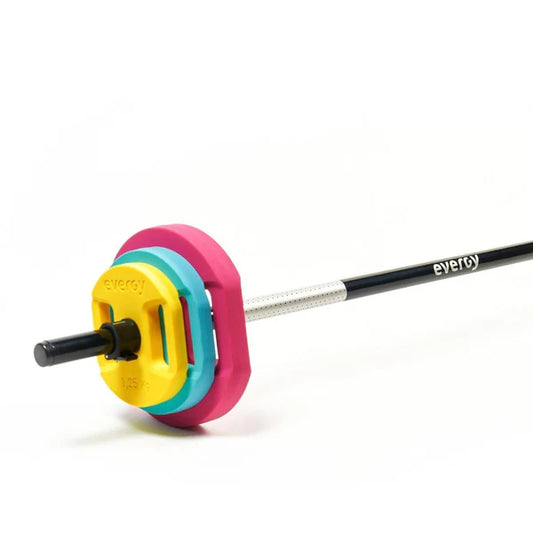 Los pesos de los discos y las barras varía dependiendo del nivel y las necesidades del usuario. Visita nuestra página web y elige el que más se adecue a tus necesidades, ya que contamos con una amplia gama de barras para todo tipo de usuarios, independientemente del nivel.