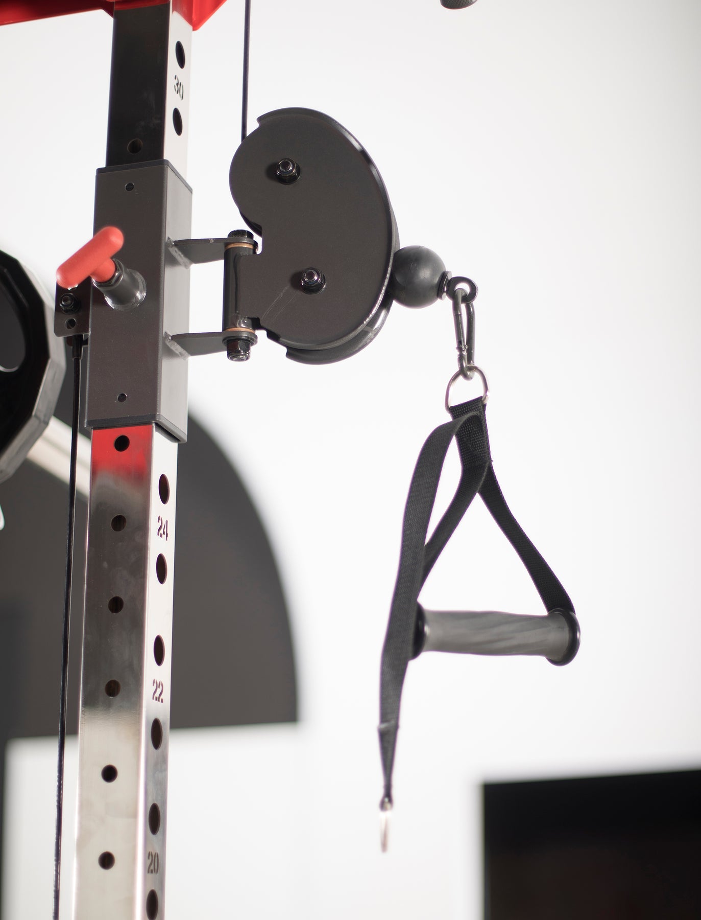 Espalda: El rack permite realizar ejercicios como las dominadas y los remos verticales, que se enfocan en los músculos de la espalda, incluyendo los dorsales anchos, los romboides y los erectores espinales.
