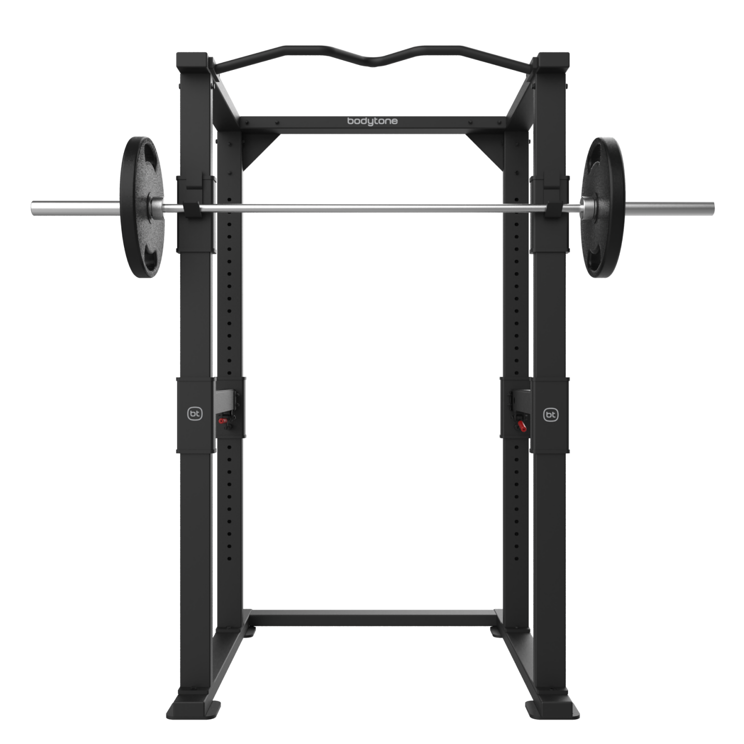La FBC10 es una jaula diseñada para la realización de sentadillas. Cuenta con un soporte para barras con dos caras que mediante un posicionador metálico puede regularse hasta en 27 posiciones. Su estructura es capaz de soportar hasta 200 kg, cuenta con una barra superior para realizar dominadas y con 2 soportes de seguridad regulables para evitar incidencias o lesiones.