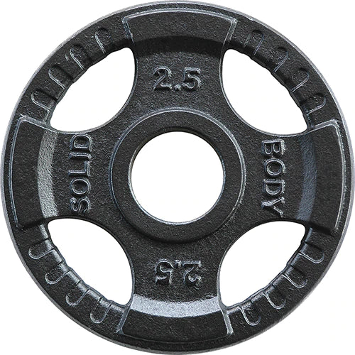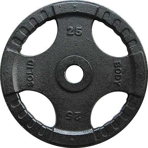 Quad grip design ensures safer and easier performance than any other board on the market. These Olympic plates are cast iron and the weight is embossed on the plate. They will not split, crack or peel.