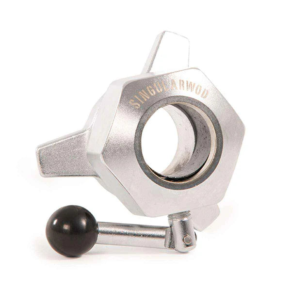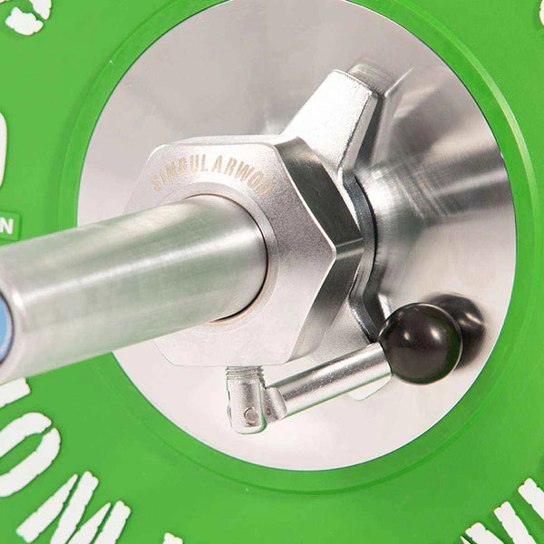 Fabricados en acero de alta resistencia con un acabado cromado, los cierres Powerlifting de Singular WOD ofrecen durabilidad y robustez para soportar los rigores de la competición. Con un peso de 5 kg en total (2,5 kg cada uno), estos cierres proporcionan la estabilidad necesaria para asegurar los discos durante los levantamientos más intensos.