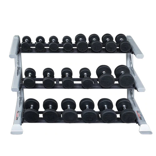The SDKR1000SD dumbbell racks have designated places for each dumbbell size, creating a neat and organized dumbbell display. The curved design of the saddle also prevents the round dumbbells from rolling, creating a safer training environment.