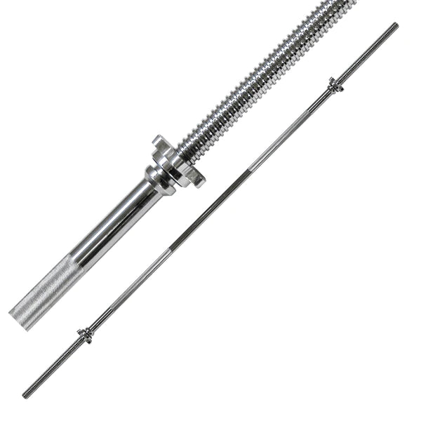 The standard straight threaded chrome bar features a fully threaded weight sleeve on each end and a pair of star lock collars. Weight plates slide onto these bars just as easily as regular threadless bars.