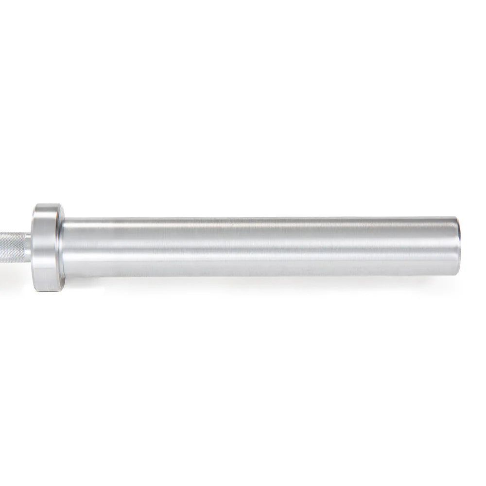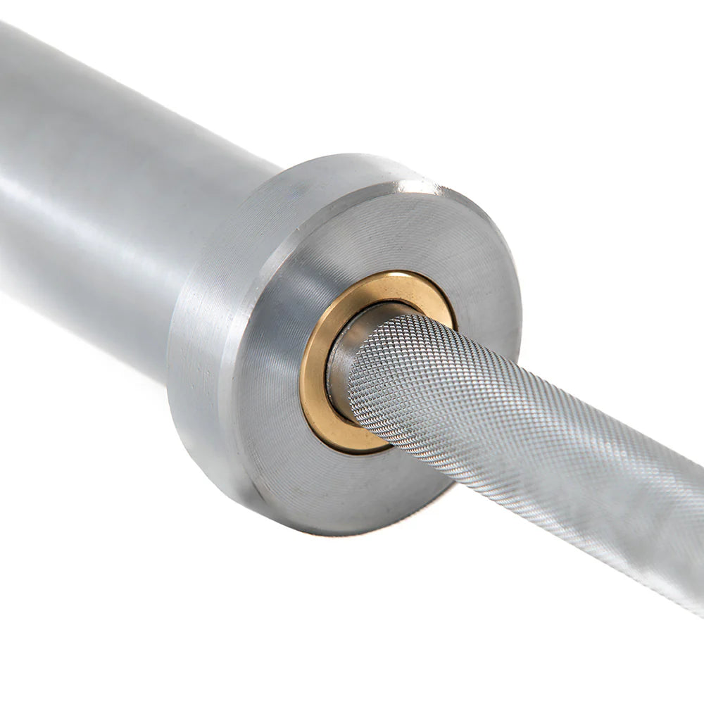 Equipado con cuatro rodamientos dobles, este sistema permite movimientos fluidos y precisos, esenciales para ejercicios explosivos como la arrancada y la cargada. La barra soporta hasta 450 kg, perfecta para entrenamientos intensivos y exigentes.