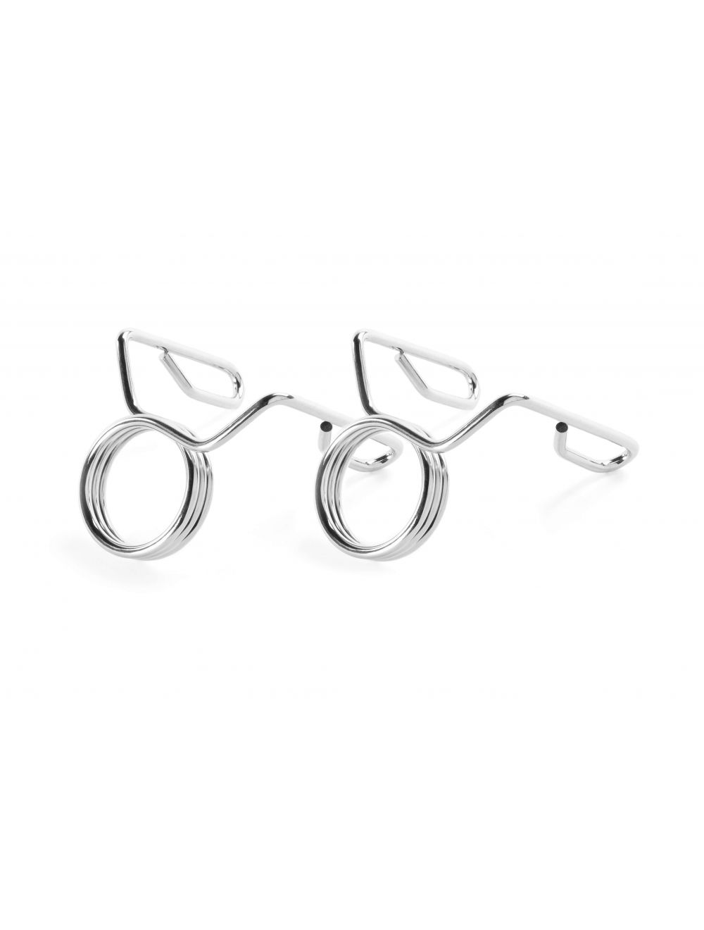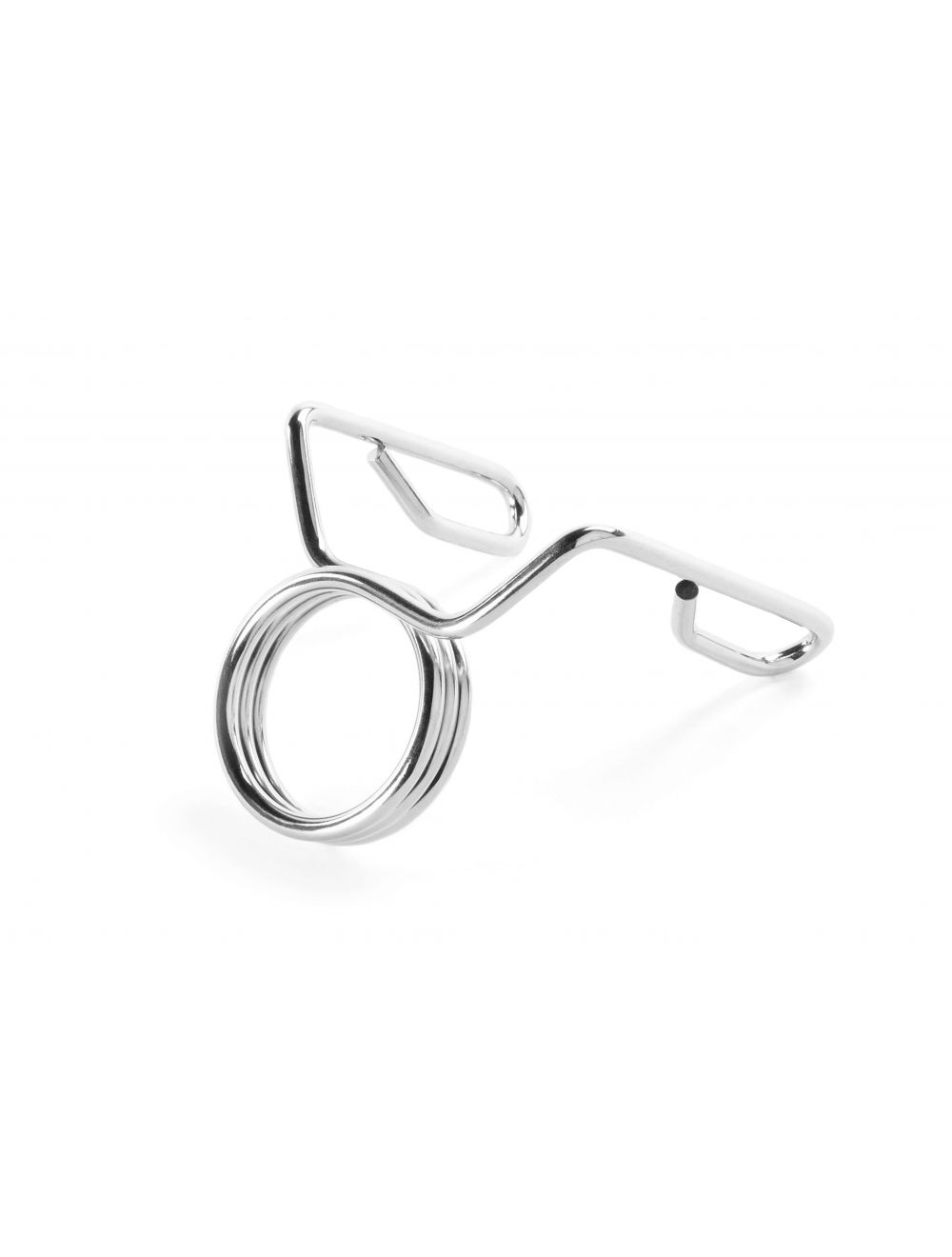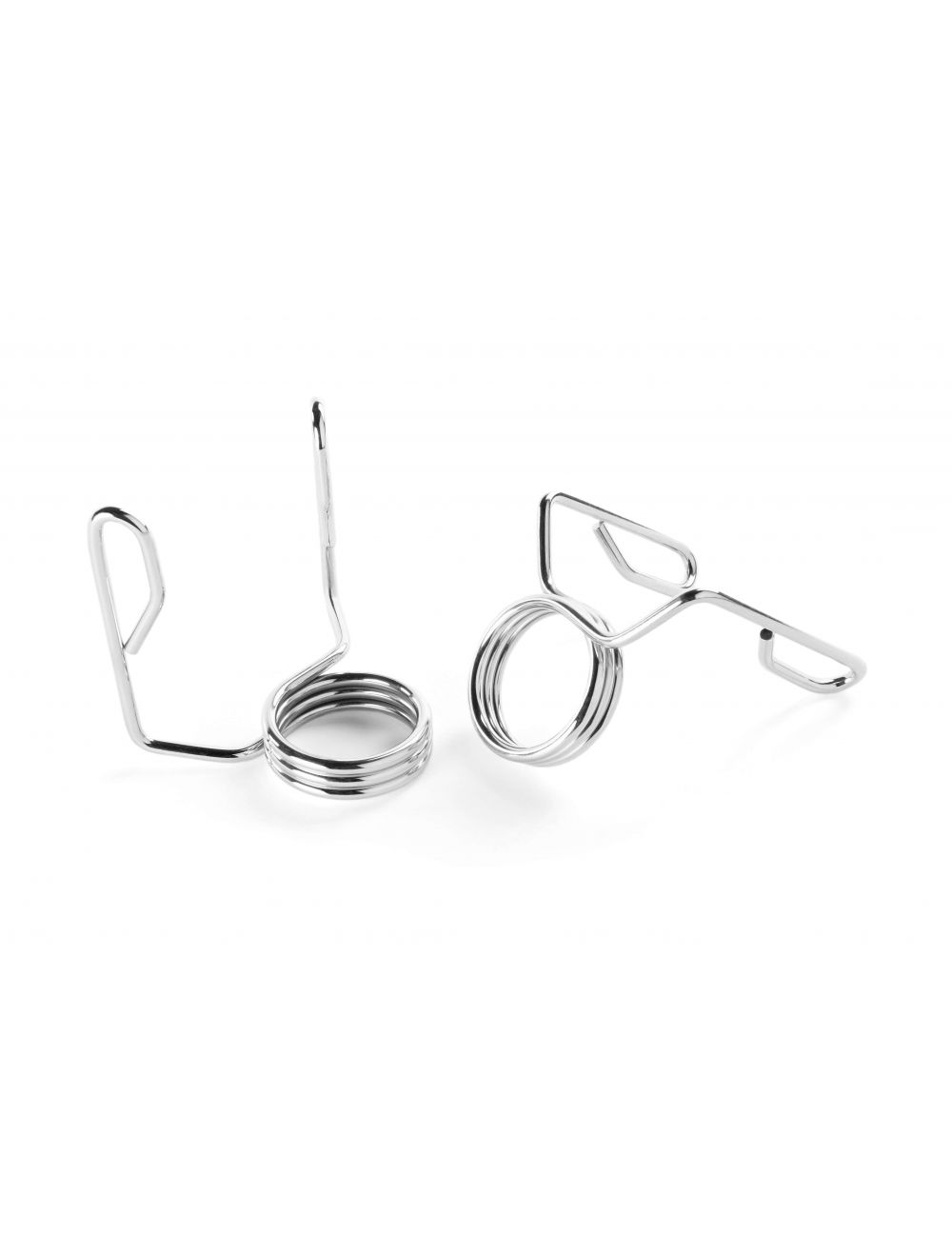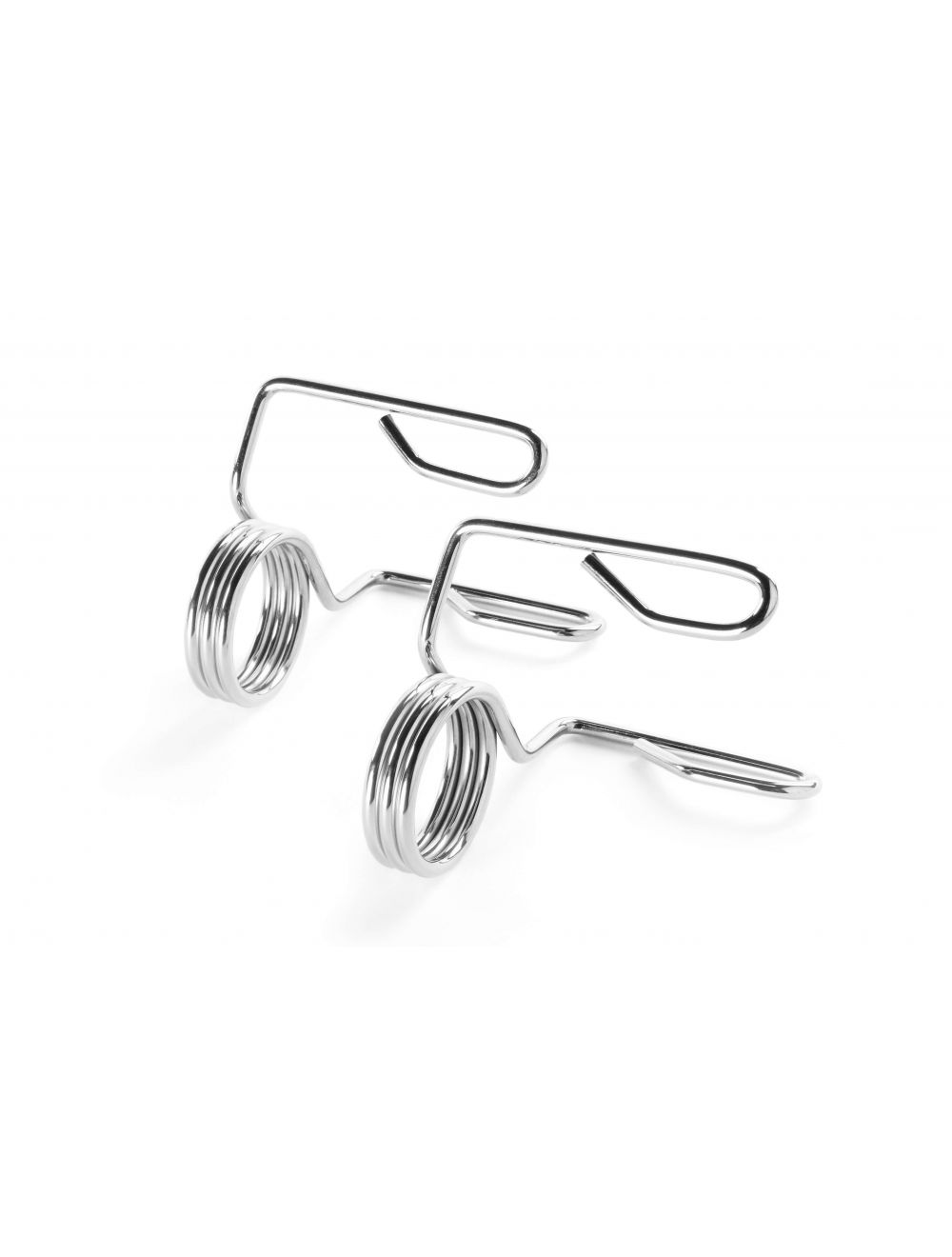 Fabricados en acero y su funcionamiento es tan básico como apretar las empuñadoras y fijar tus discos olímpicos a la barra. La tensión que proporciona su forma de muelle es mas que suficiente para evitar que los discos se muevan tras cada levantamiento. Su superficie cromada los hace altamente resistentes a golpes y condiciones de humedad. Son tan sencillos que no notarás que los levantas, aportan muy poco peso a la barra una vez cargada.