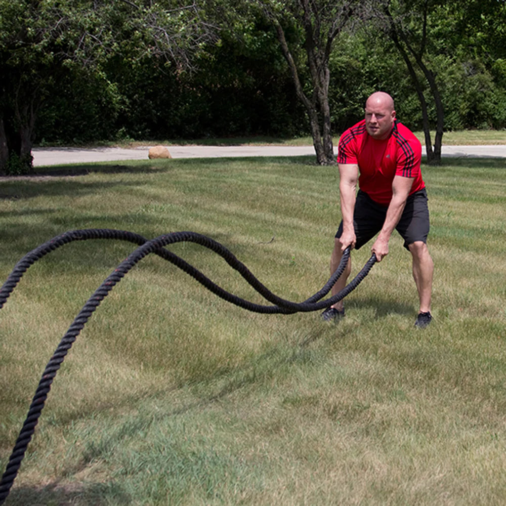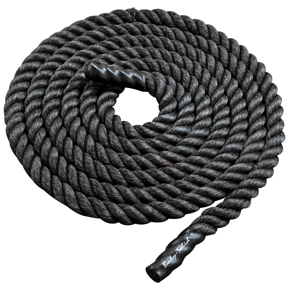Las cuerdas de entrenamiento físico de Body-Solid vienen en cuatro tamaños con diferentes longitudes y diámetros. Todas las cuerdas están hechas de hilo de polietileno duradero con extremos terminados envueltos para mayor durabilidad. Además, son de color negro para ayudar a enmascarar la acumulación de suciedad con el tiempo.