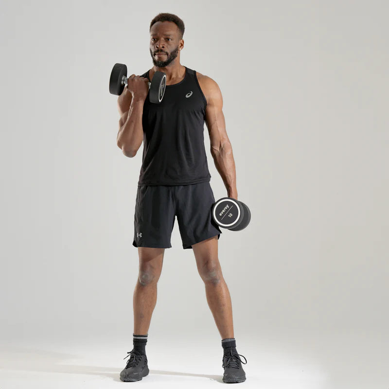 Las Mancuernas Élite PU Evergy ofrecen una combinación excepcional de durabilidad, estética y funcionalidad. Con una amplia gama de pesos y un diseño ergonómico, son perfectas para todo tipo de entrenamientos.
