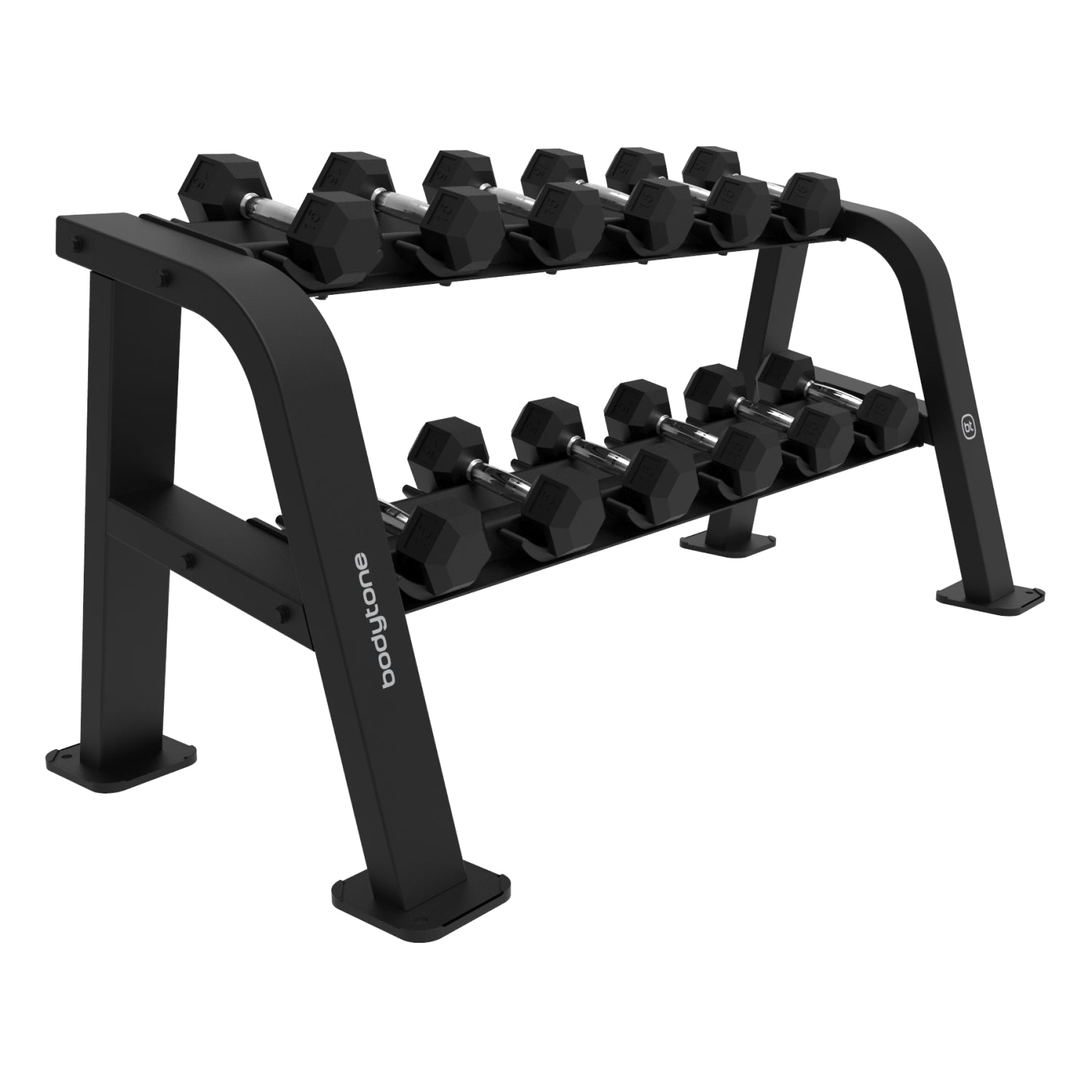 - Otras especificaciones: Capacidad para 6 pares de mancuernas, ya sean redondas o hexagonales.