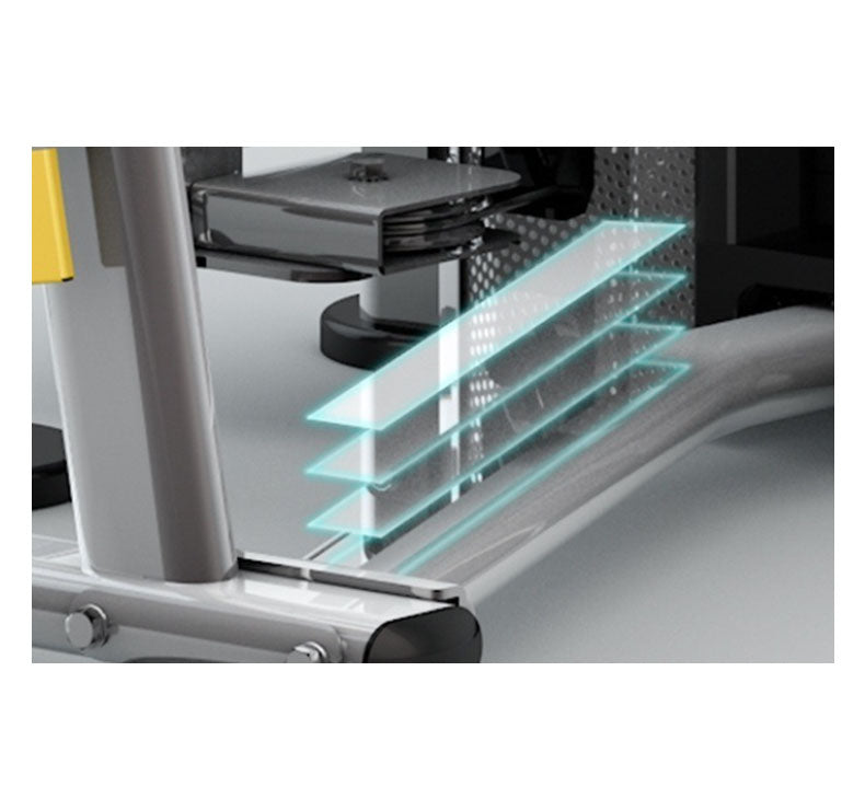 - Selectores de placas magnéticas. Los imanes eliminan cualquier posibilidad de que el selector se retire durante el ejercicio. Los golpes que los usuarios inexpertos dan a las placas pueden hacer que el selector se retire en medio de un ejercicio, lo que puede causar un riesgo de lesión.