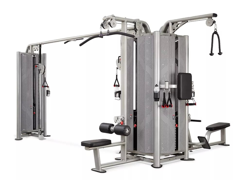 La multiestación JG5000S combina diversos ejercicios en una sola máquina que permite el entrenamiento en grupo, mejora la interacción de los entrenamientos y maximiza el espacio.