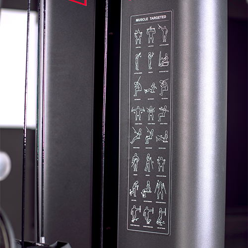 - Incluye un panel gráfico con una tabla de todos los ejercicios que se pueden hacer con la máquina.
