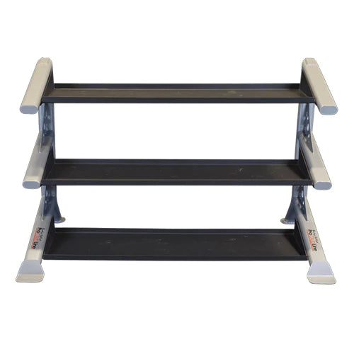 El estante para pesas rusas de 3 niveles Pro Clubline SDKR1000KB de Body-Solid es una solución perfecta para cualquier instalación que busque una pantalla premium para una variedad de balones medicinales.