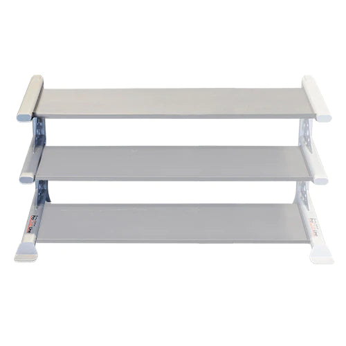 Tanto el SDKRDBS como el SDKRDBL son estantes planos para mancuernas que pueden adaptarse a cualquiera de las mancuernas de goma SDR, mancuernas hexagonales SDX, mancuernas SDP Pro o mancuernas recubiertas de vinilo o neopreno.