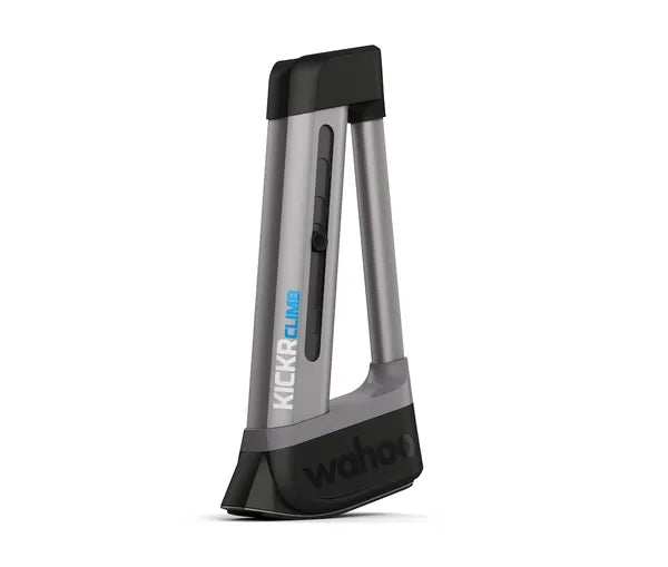 Lleva tu KICKR a otro nivel y entrena para los ascensos. El simulador de pendientes para interiores KICKR CLIMB se ha diseñado para funcionar exclusivamente con los rodillos inteligentes Wahoo KICKR y, cuando está conectado, añade cambios de pendiente físicos a tu entrenamiento de ciclismo indoor.