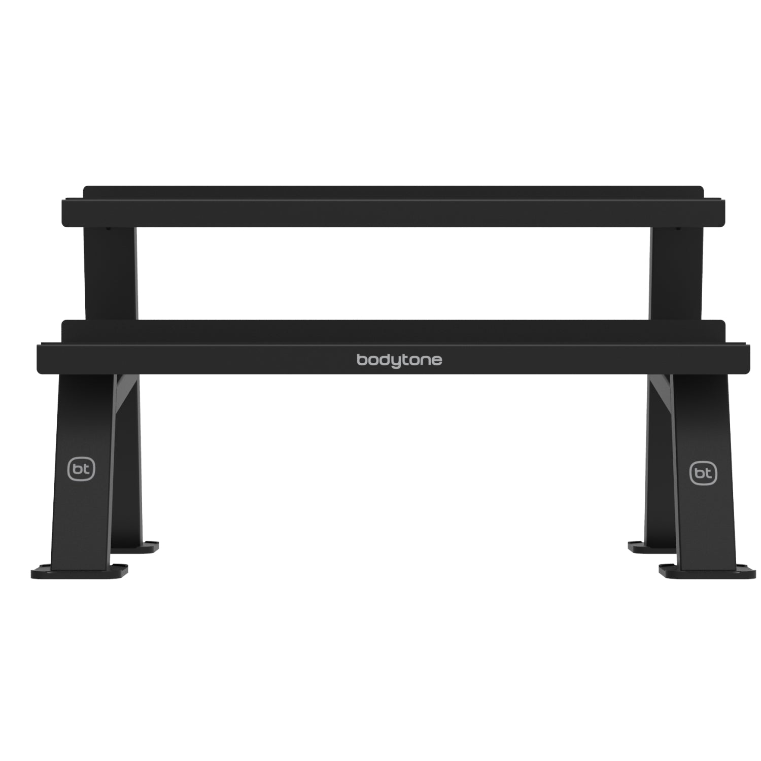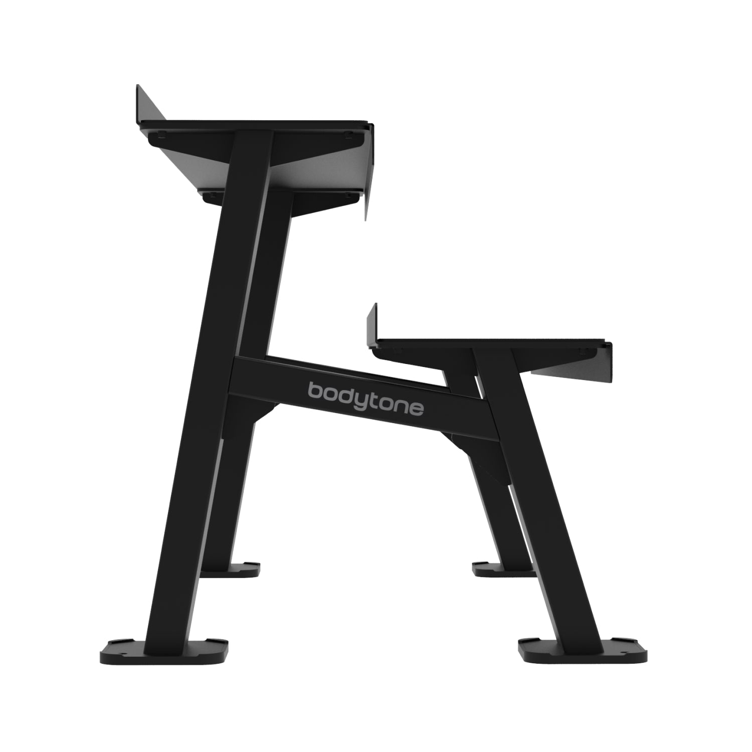 Diseñada para almacenar kettlebells, su robusta estructura le permite soportar hasta 300 kg de carga. Con ella podrás colocar de forma ordenada tus kettlebells en dos alturas, con una base sólida y firme. También podrás almacenar cualquier otro tipo de material gracias a su amplia superficie.