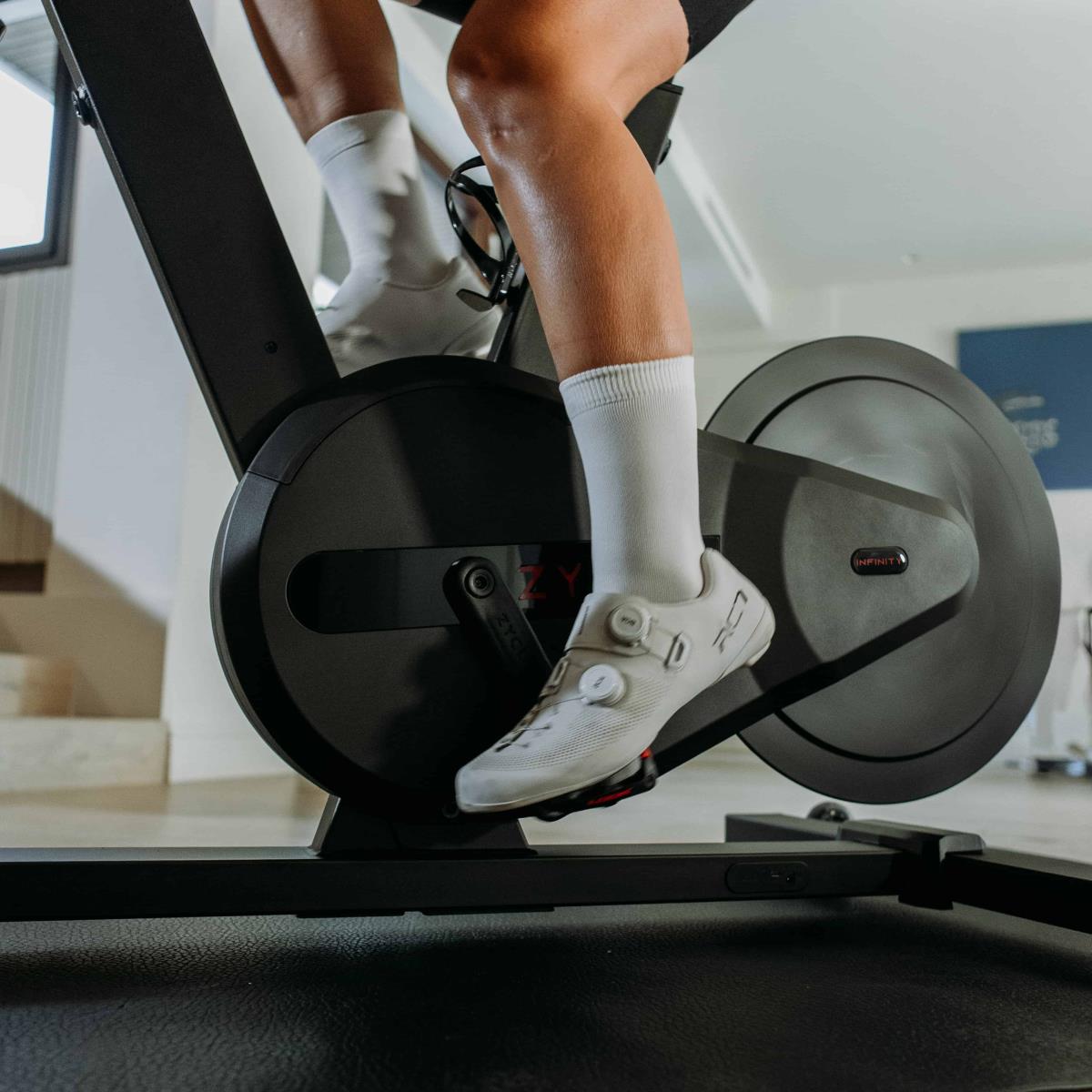 La ZBike Infinity es la bicicleta indoor más realista de ZYCLE, creada para reproducir con total fidelidad las sensaciones del ciclismo en carretera. Su innovador sistema de piñón libre permite una pedalada natural y fluida, ofreciendo una experiencia de entrenamiento realista y silenciosa. Además, es capaz de alcanzar una potencia máxima de 2.000 W y ofrece una medición de precisión inferior al 1%, lo que garantiza datos más fiables y un rendimiento profesional en cada sesión.