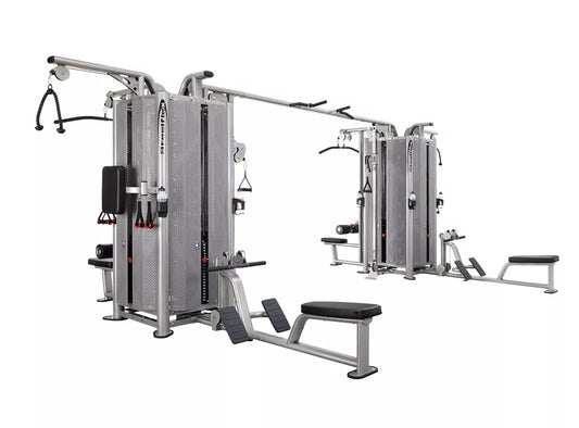 Multi-ginásios são equipamentos de musculação que permitem trabalhar diferentes grupos musculares em uma única máquina. Essas estações normalmente incluem uma combinação de polias, barras e bancos ajustáveis, proporcionando uma ampla variedade de exercícios e posições de treinamento.