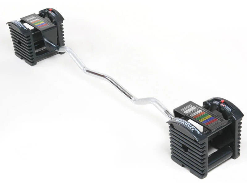 A barra curva EZ Pro Series da Powerblock é uma barra de aço de 25 mm e 83 cm de comprimento (122,5 cm de comprimento total)