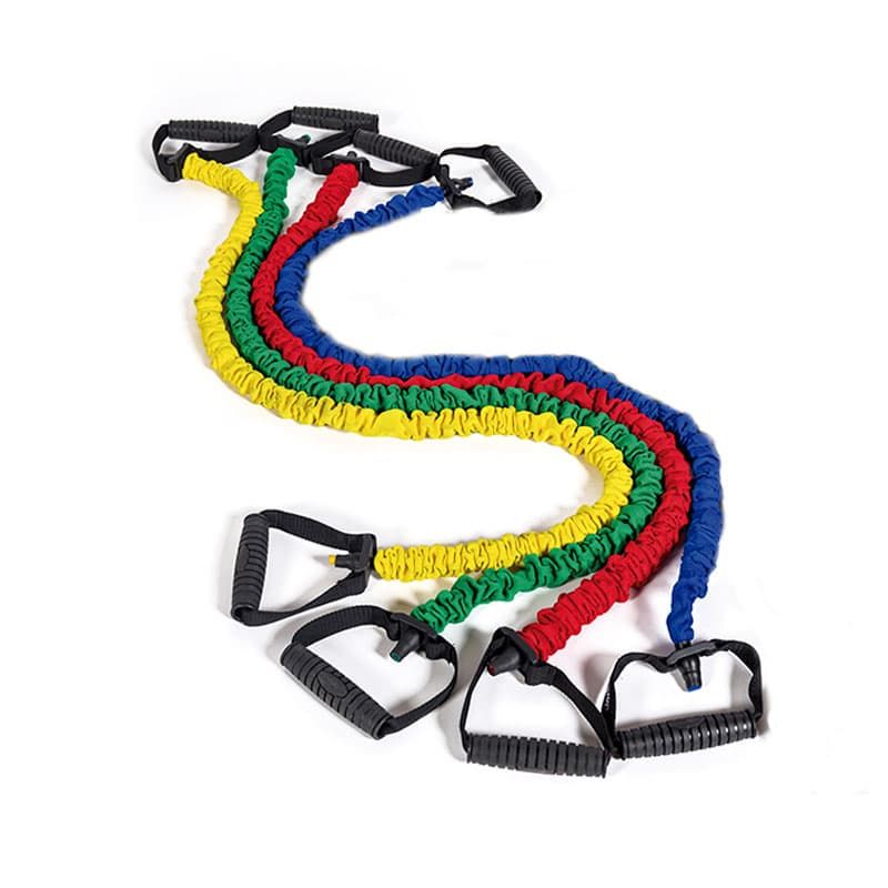 Possui alças que são utilizadas principalmente para exercícios de bíceps e tríceps. É quase impossível se machucar com elásticos, mas se você é iniciante é recomendável começar com intensidade leve e monitorar sua própria evolução. Disponível em quatro intensidades: leve, média, forte e extra forte.