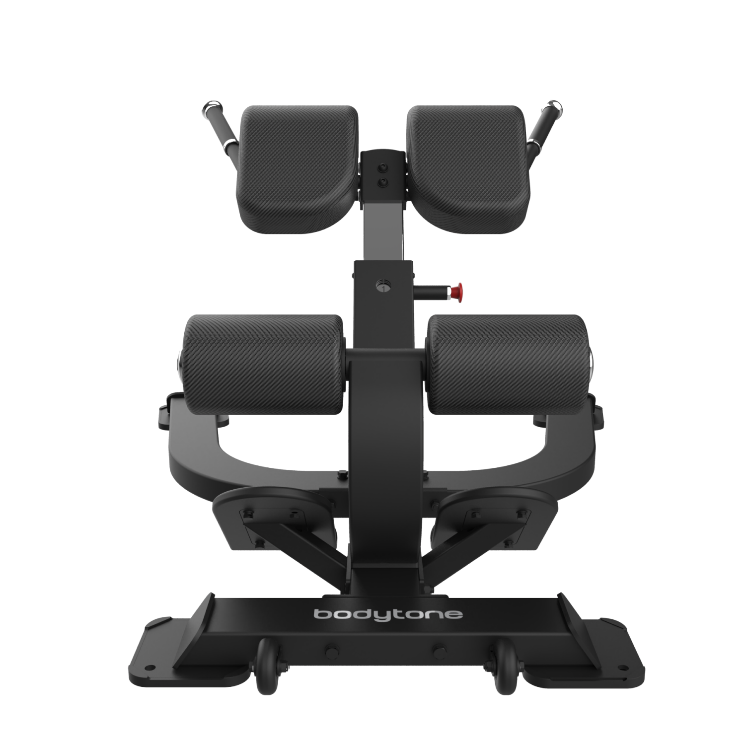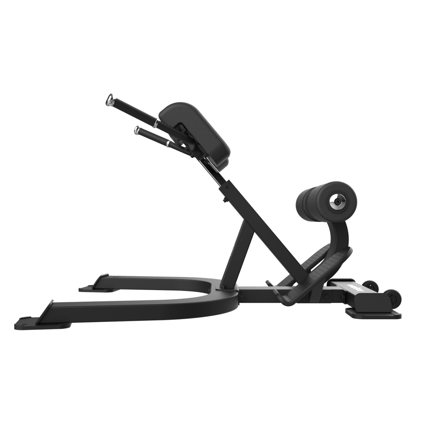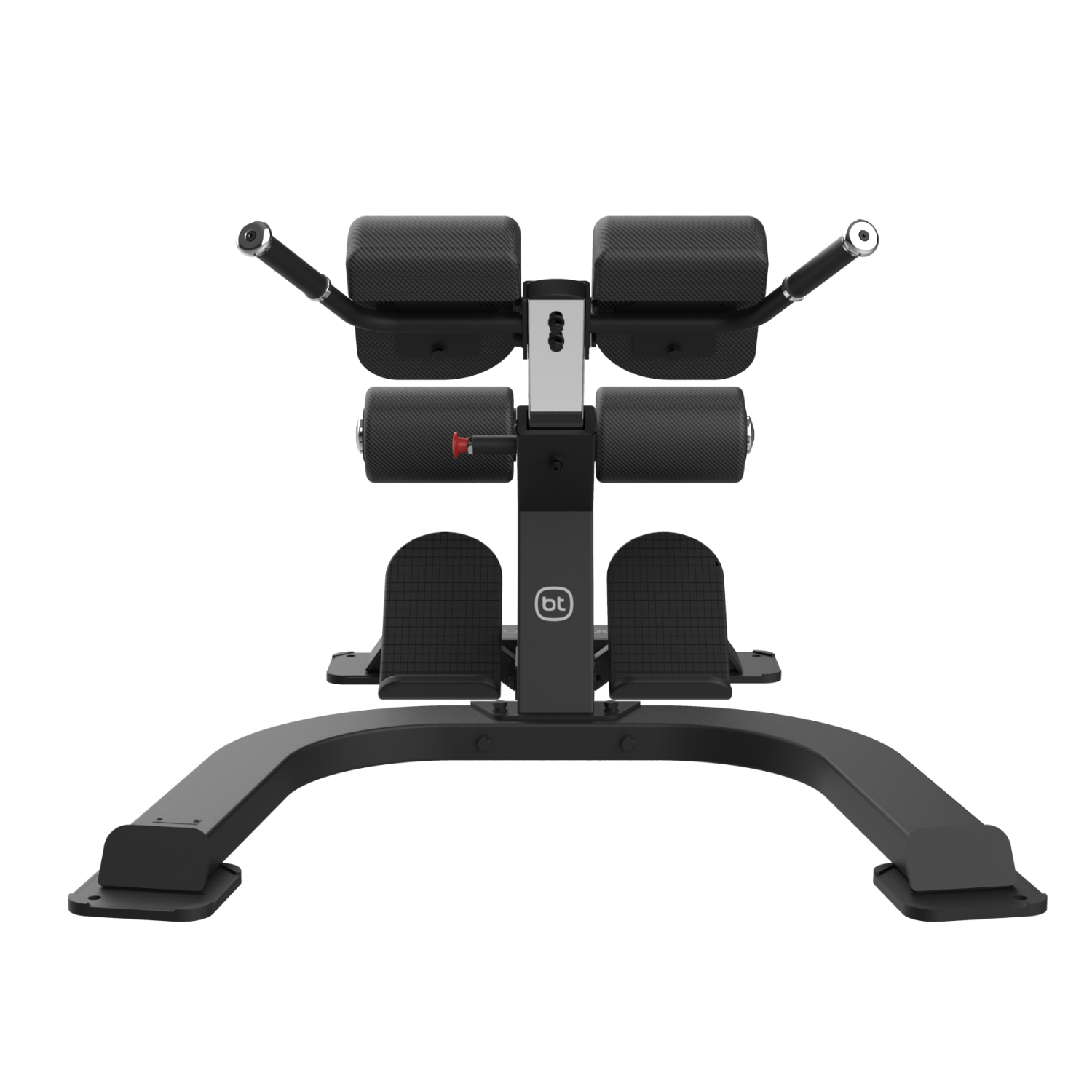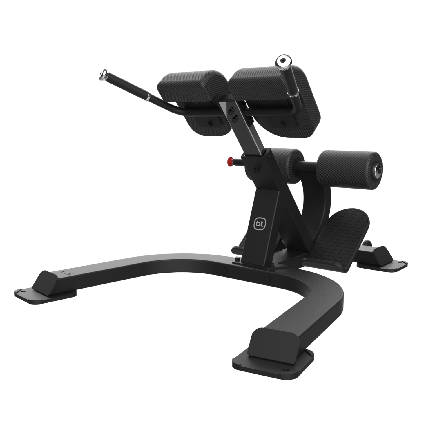 O FBC12 é um banco projetado para realizar hiperextensões capaz de suportar até 150 kg. Seus encostos são injetados com espuma de poliuretano e estofados em fibra de carbono para realizar os exercícios com conforto. Além disso, o espigão é ajustável em até 9 posições para se adaptar corretamente à sua altura e possui 2 alças para ajudá-lo na execução do exercício.