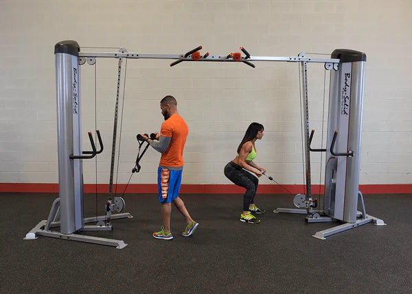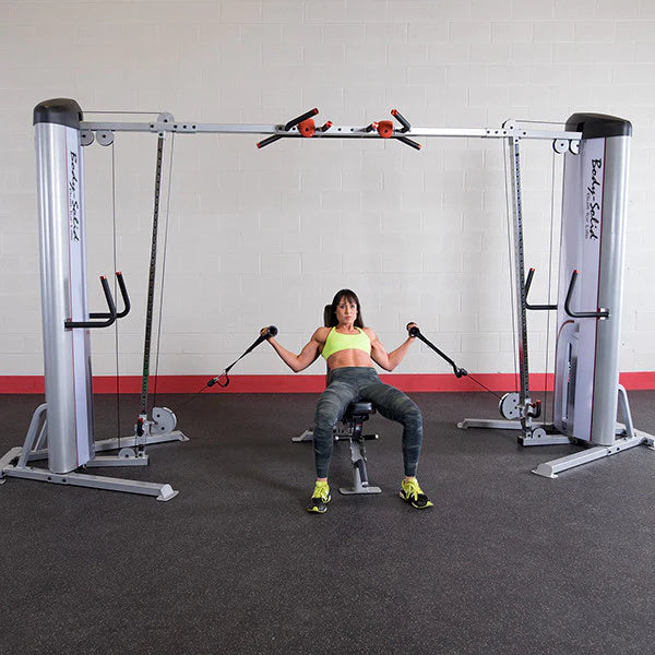 O Body-Solid Pro Clubline Series II S2CCO é uma máquina de cruzamento de cabos com polias ajustáveis de alto a baixo e duas pilhas de pesos selecionadas para treinamento de força funcional.
