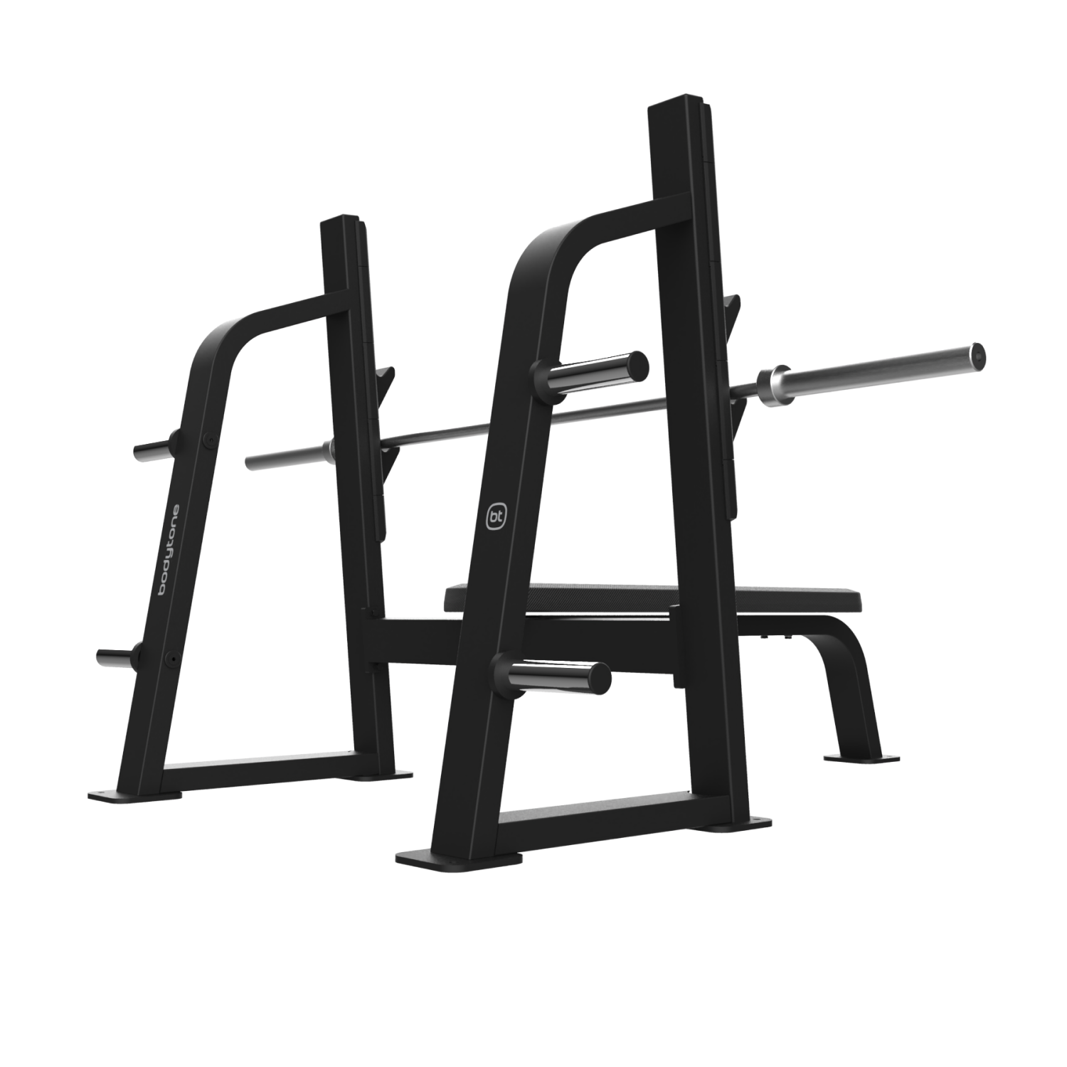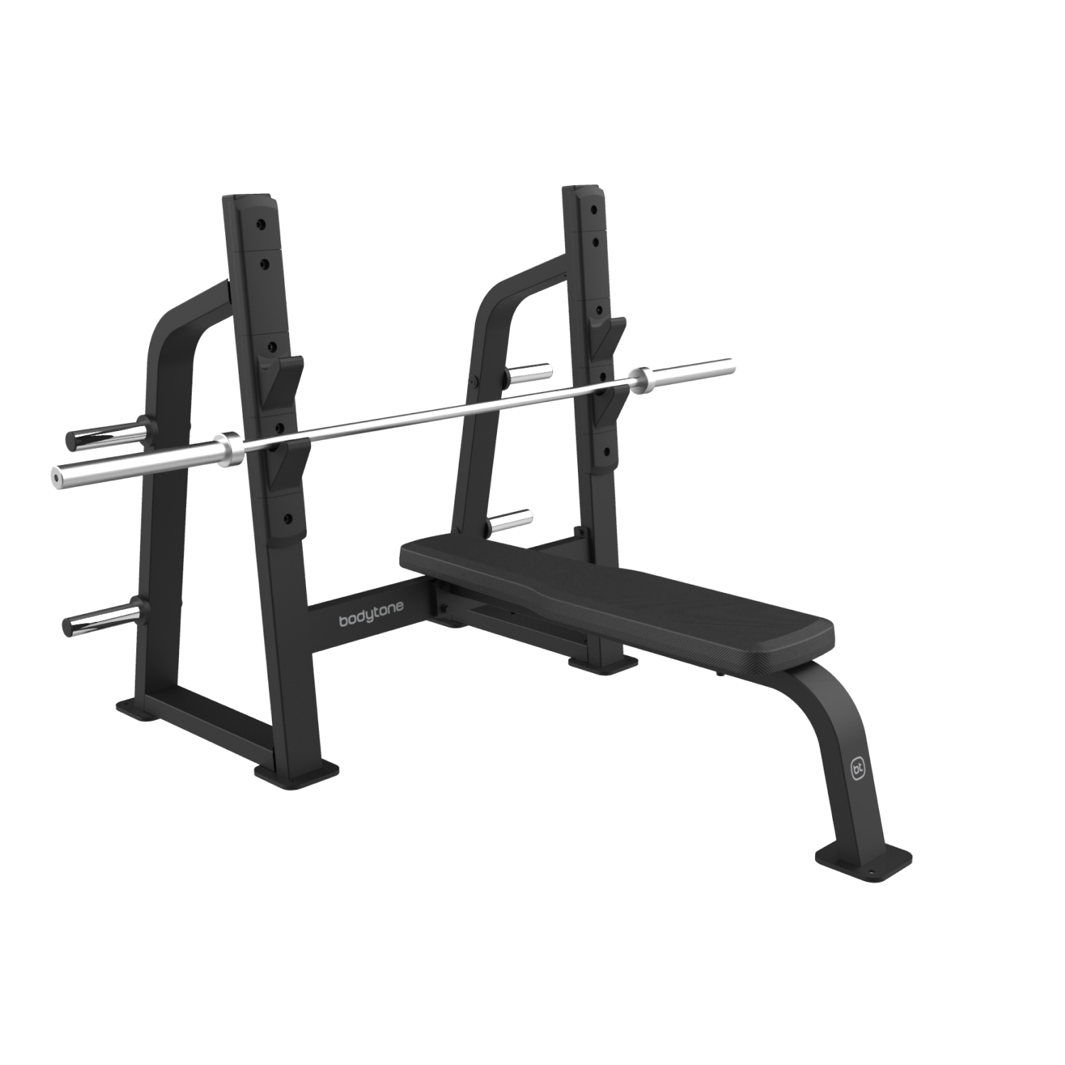 Banco profissional Bodytone em aço inoxidável de alta qualidade, ideal para treino de pressão torácica na posição horizontal.
