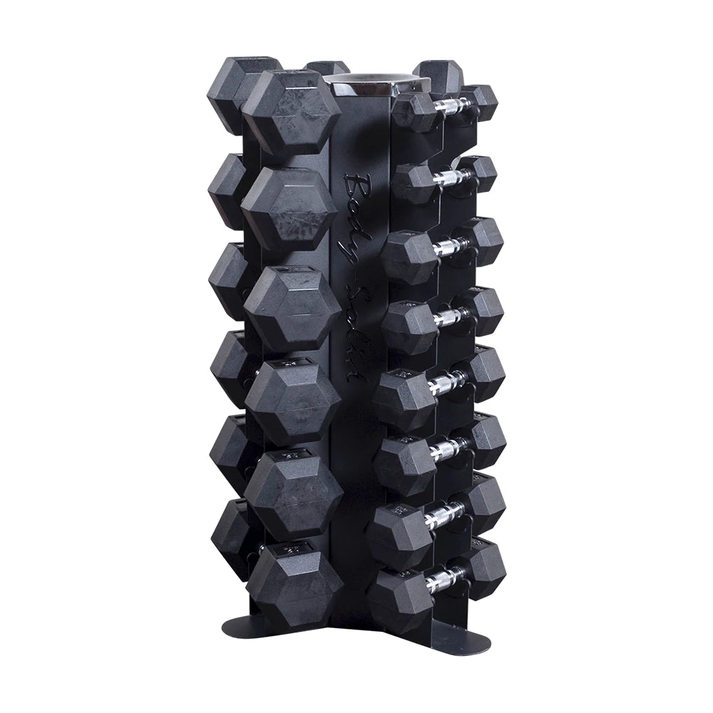 O suporte vertical para halteres Body-Solid GDR80 da Body-Solid possui armazenamento vertical para 10 pares de halteres, mantendo os espaços de treino limpos, organizados e seguros.